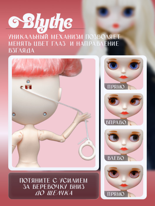 глазной механизм: 4 цвета глаз, смена цвета и направления взгляда с помощью верёвочки на затылке.