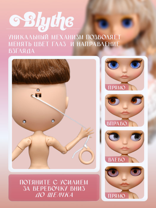глазной механизм: 4 цвета глаз, смена цвета и направления взгляда с помощью верёвочки на затылке.