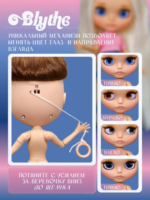 глазной механизм: 4 цвета глаз, смена цвета и направления взгляда с помощью верёвочки на затылке.